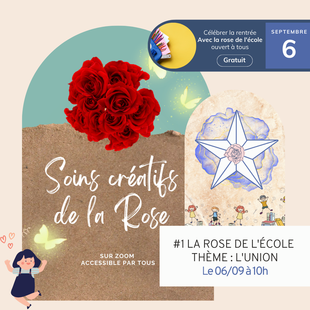 Lors de ce premier soin-créatif nous retrouverons pour un atelier en ligne, gratuit et ouvert à tous, afin de célébrer la rentrée et découvrir la médecine de la Rose de l'école qui vous permettra de recevoir les enseignements délivrés ici et de vous relier à tous les enfants de la Terre afin qu’ensemble vous puissiez bâtir une nouvelle ère. Fabuleux non ?